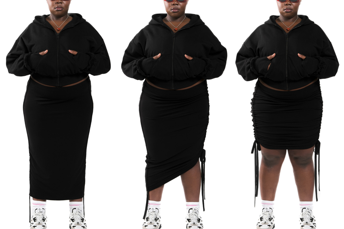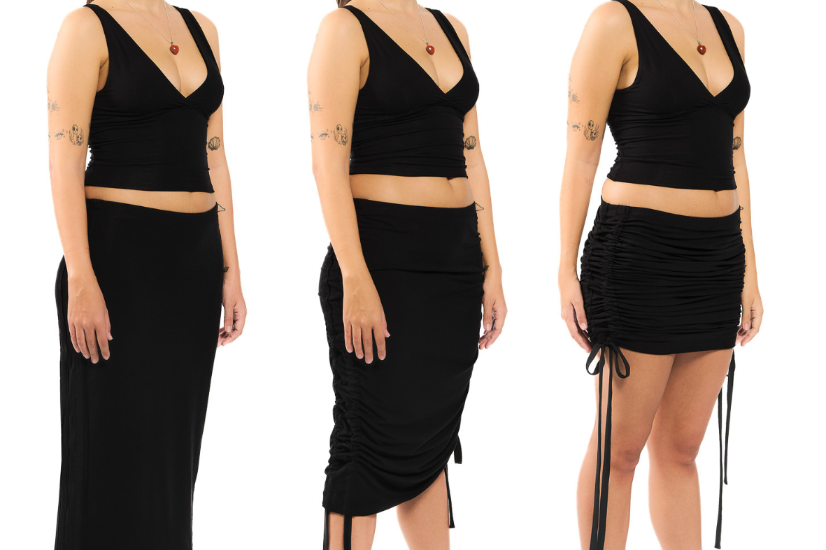 BAEsics Multi-Length Ruche Skirt in Onyx