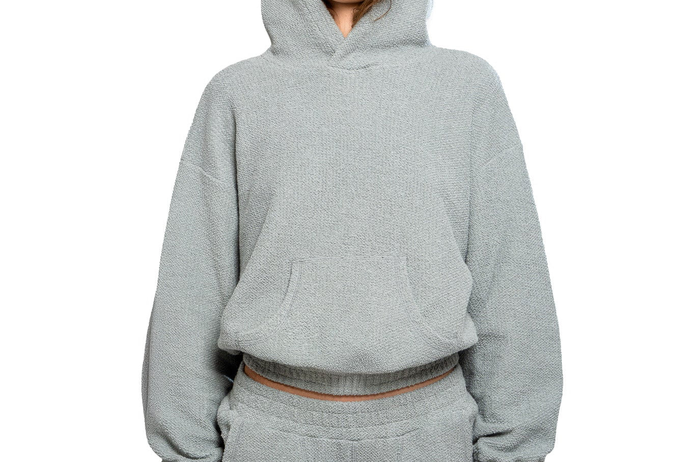LUNA Organic Cotton Pull Over Textured Hoodie in Moondust