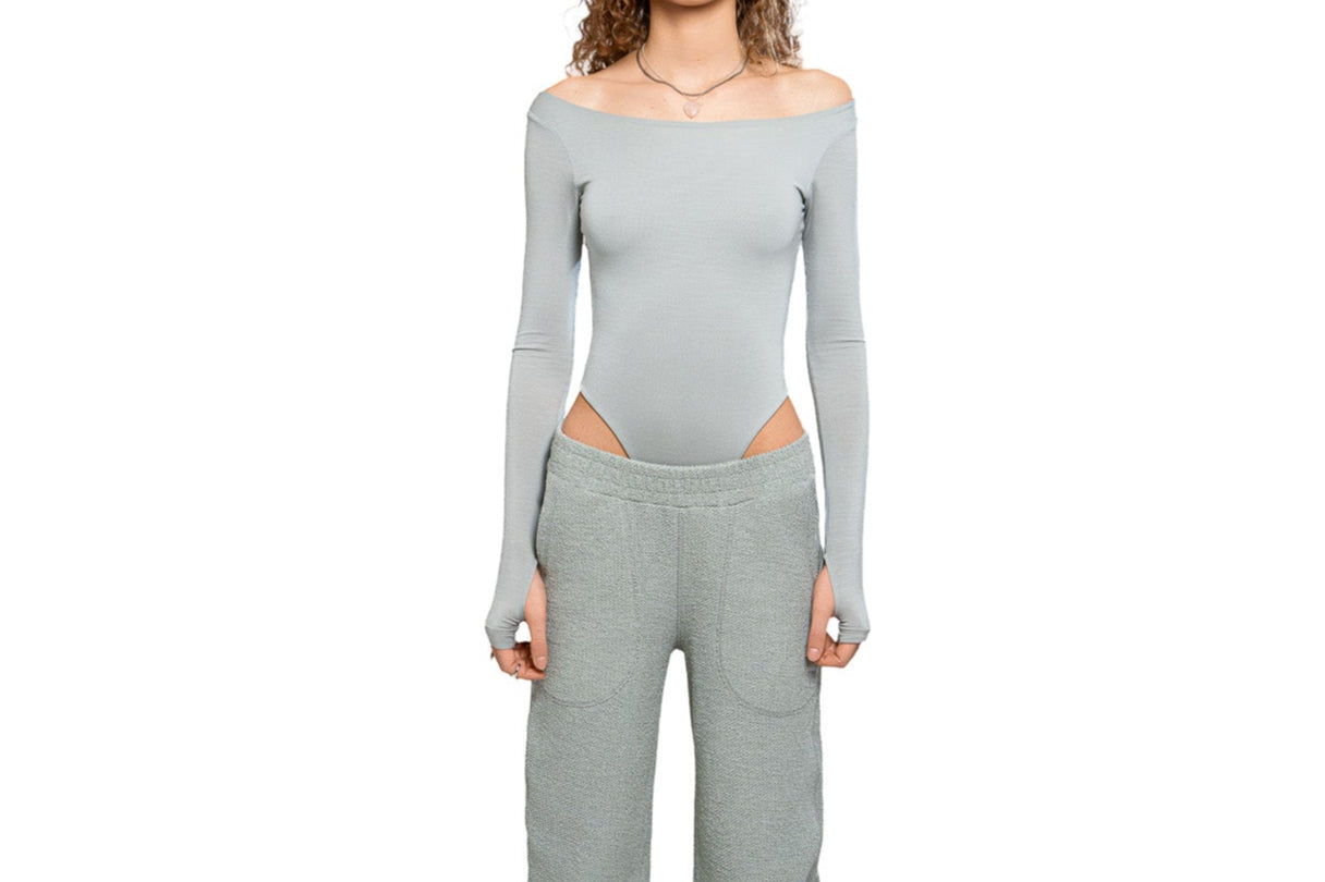 LUNA High Cut Long Sleeve Bodysuit in Light Ash