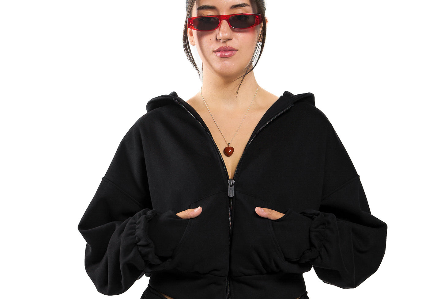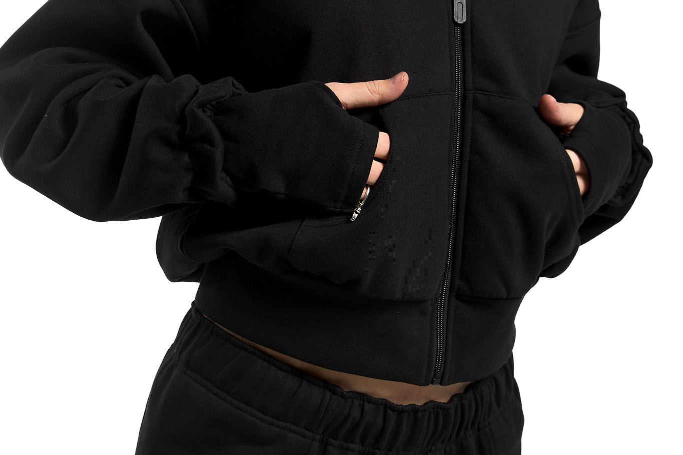 BAEsics Organic Cotton Zip Up Glove Cuff Hoodie in Carbon Cosmos (400gsm)