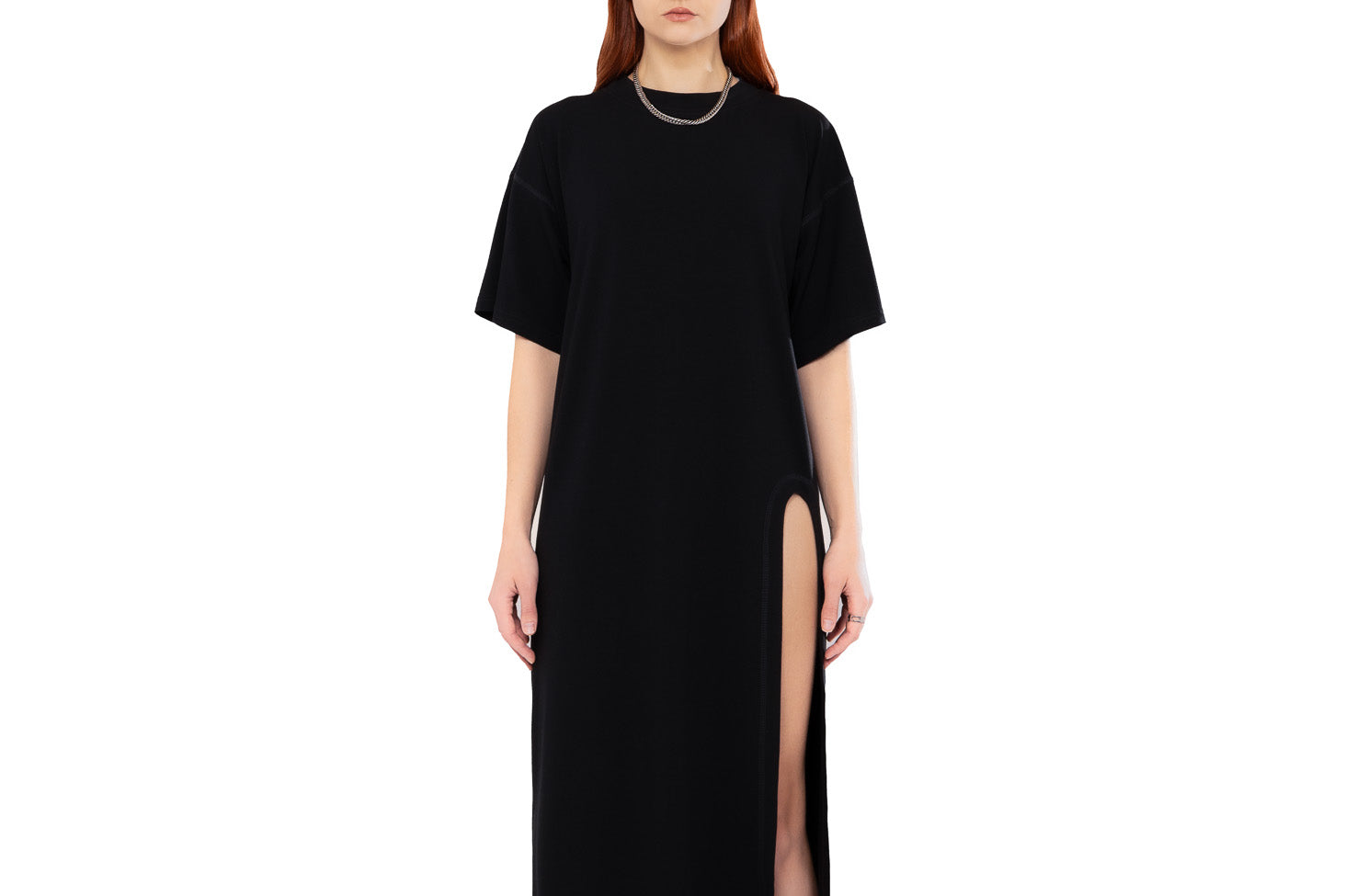[GASOLINA] || MAXI Oversized Cut Out Tee Dress & One Leg Short Co-ord in Black