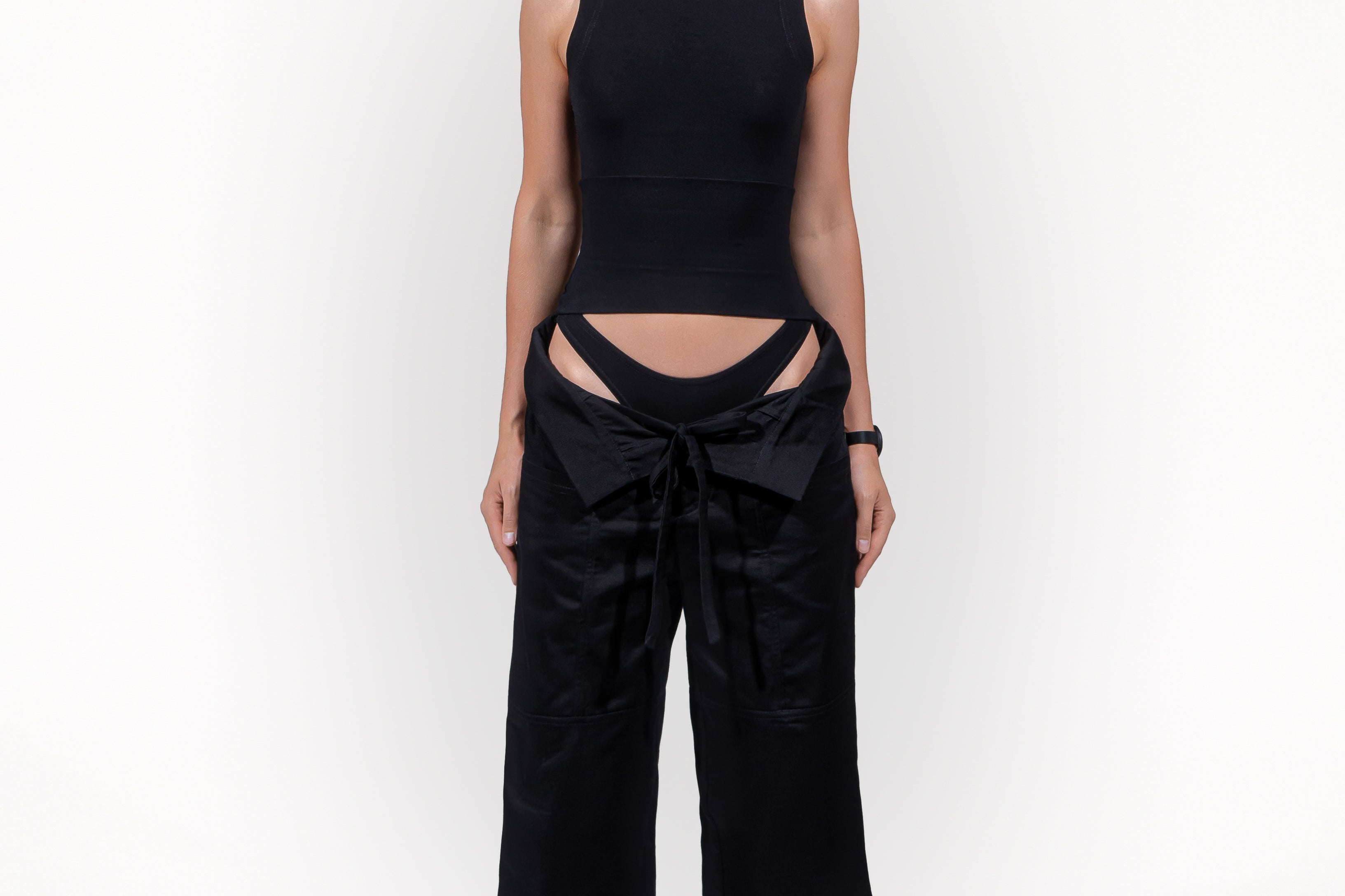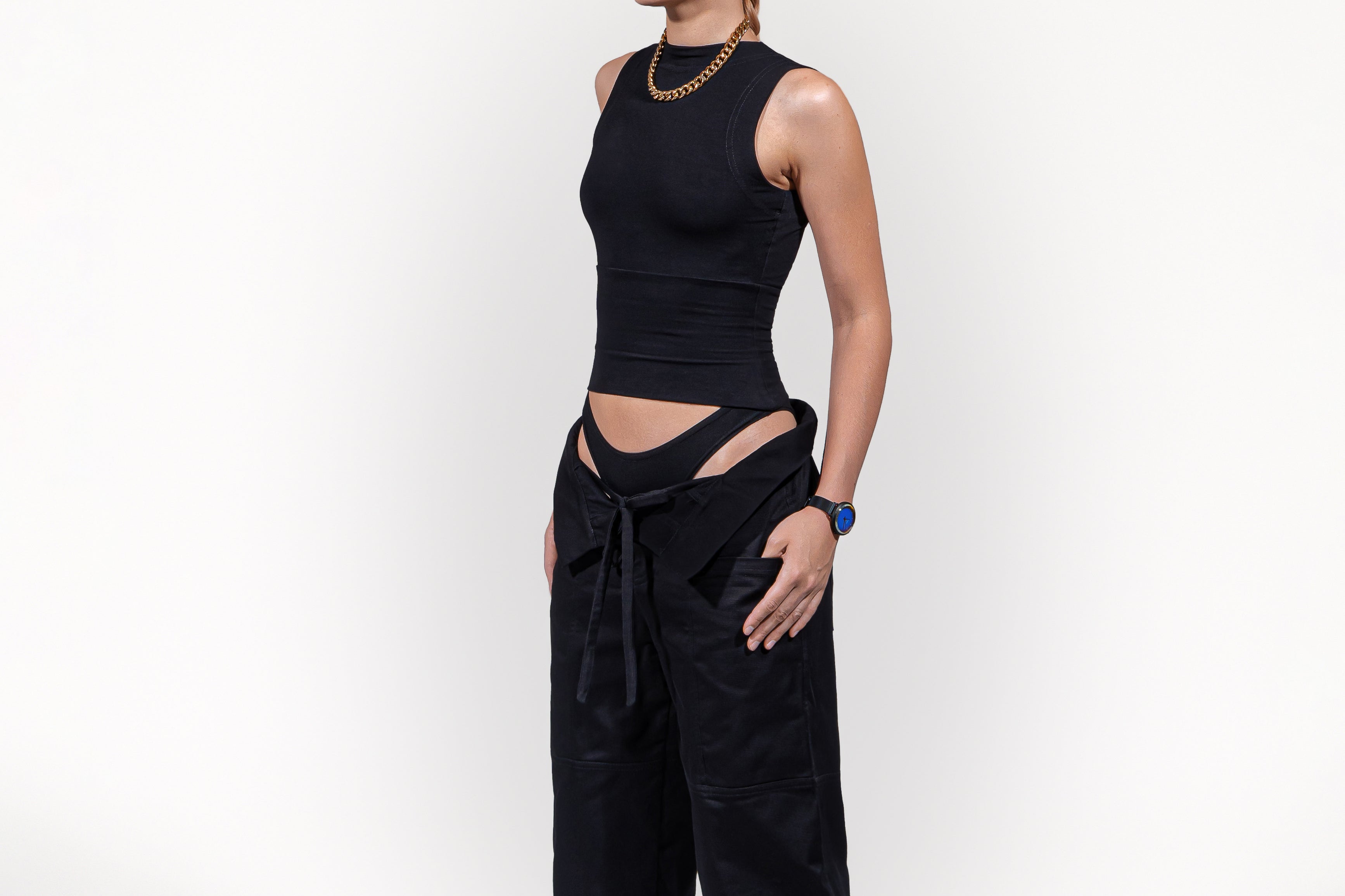 [GASOLINA] 100% Organic Cotton Adjustable Cuff OPEN Cargo Pant in Black