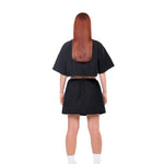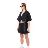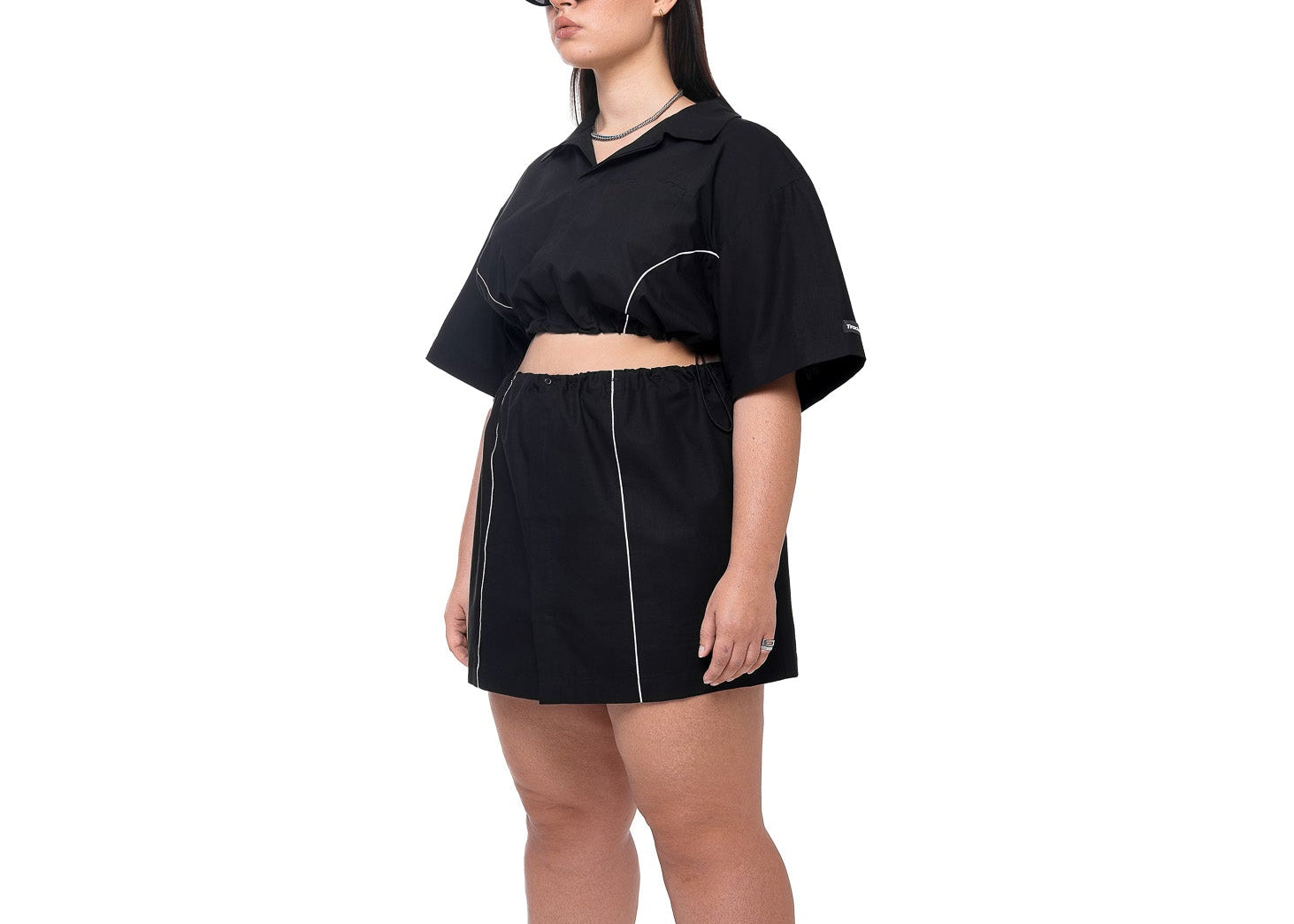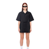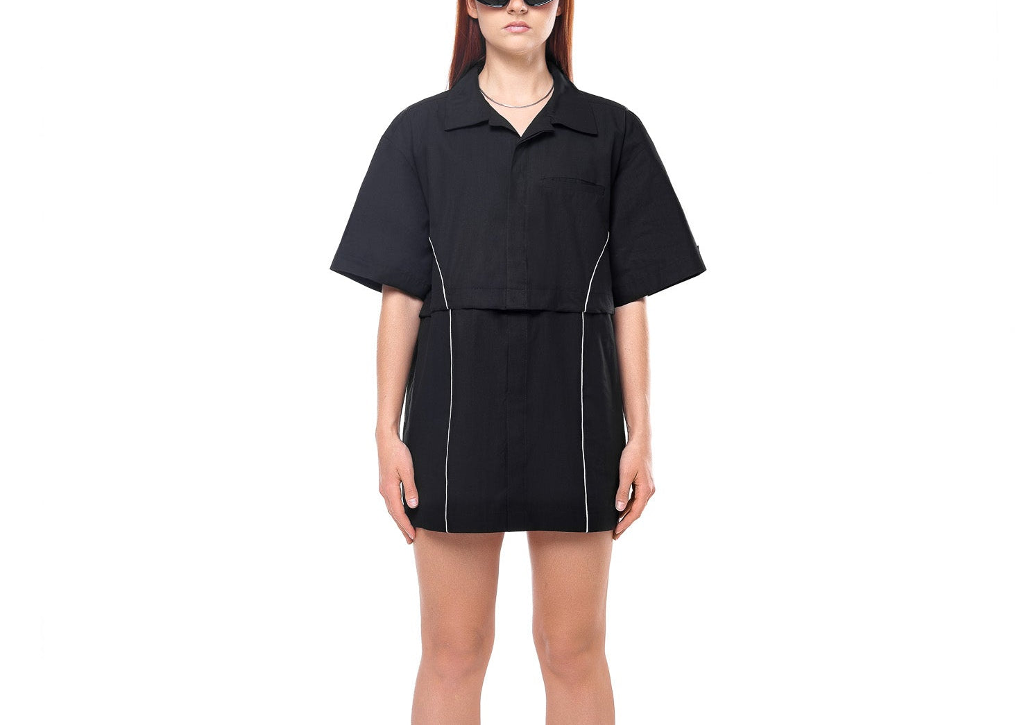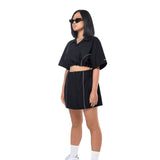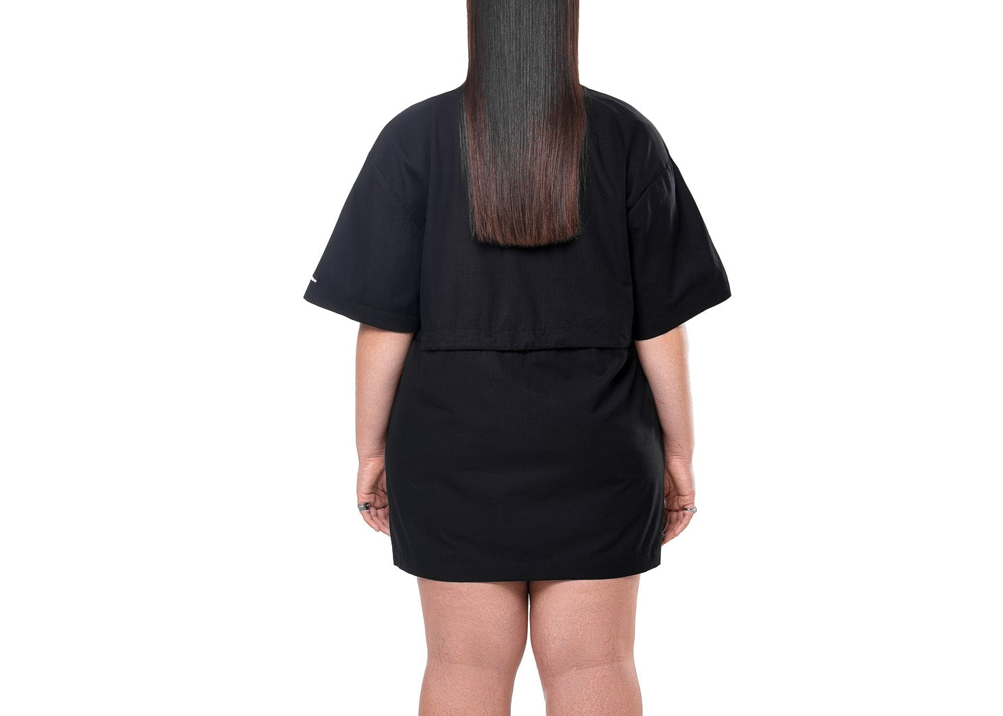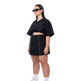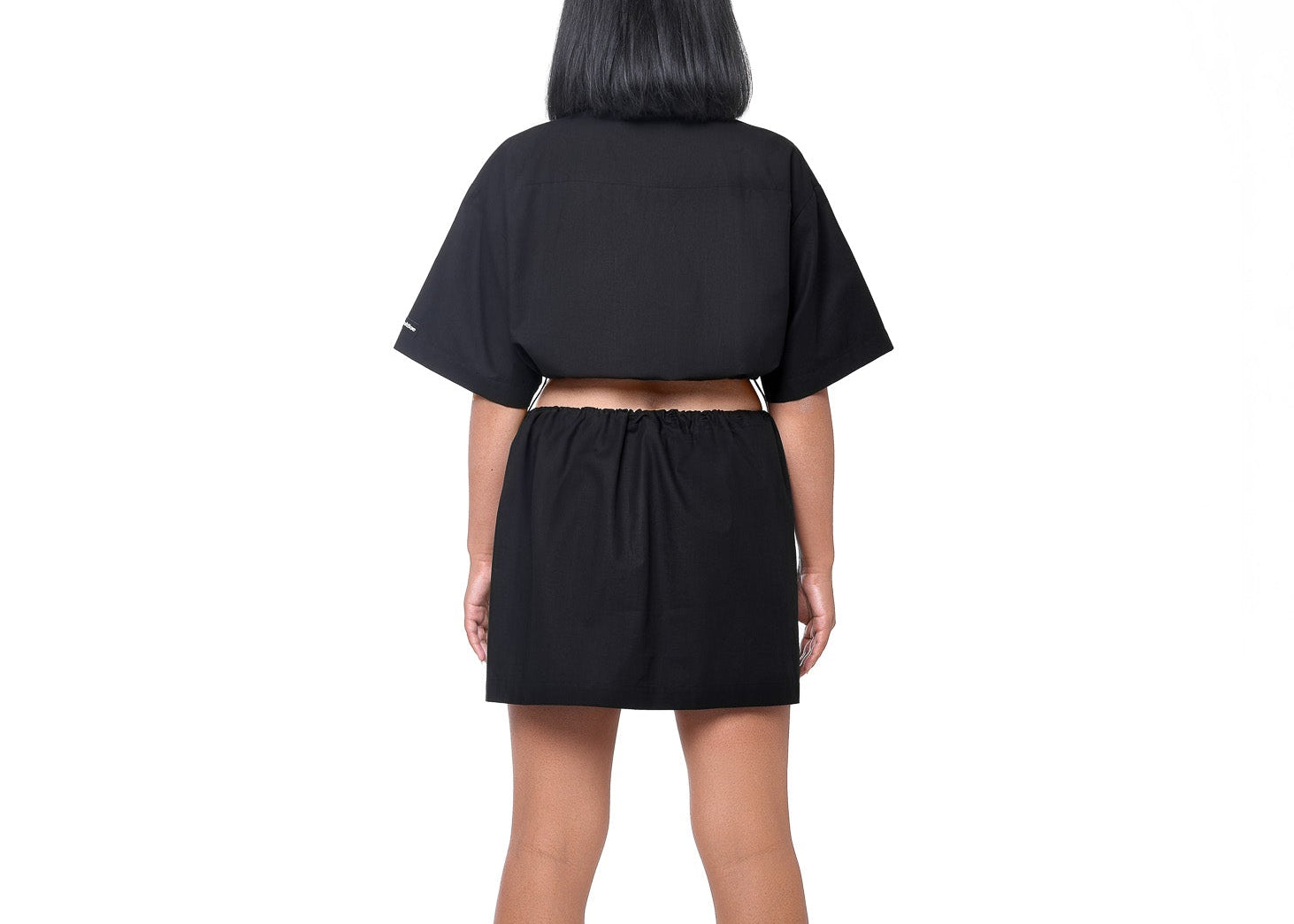 An oversized shirt dress transforms into a cute crop and skirt co-ord - it's always your choice.