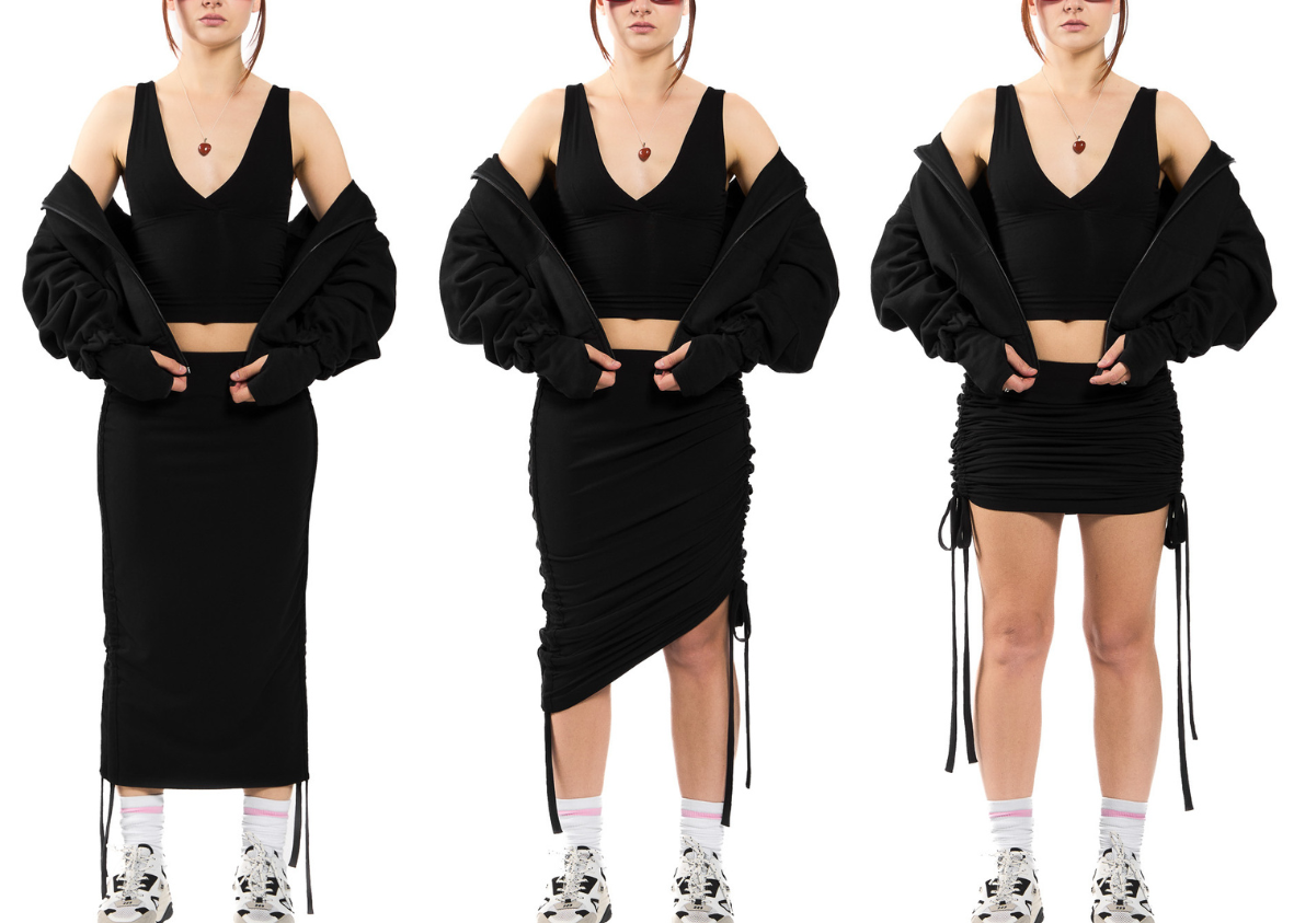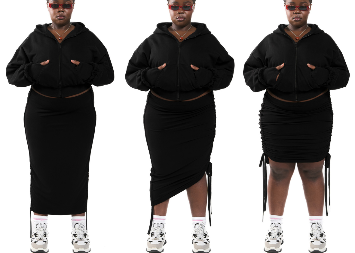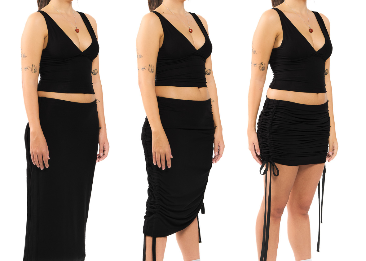 BAEsics Multi-Length Ruche Skirt in Onyx