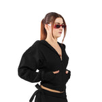 A hoodie that hugs you in all the right places. Looks like a corset, but feels like a cloud.This is the hoodie you throw on when you want to feel cozy and hot.