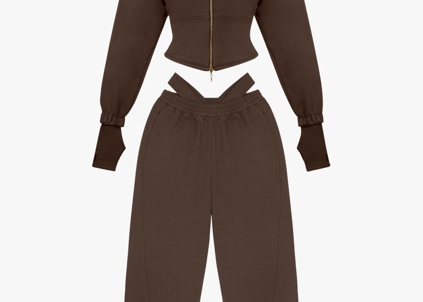 BUNDLE: Organic Cotton Corset Hoodie + Double Waistband Joggers in Chocolate Martini