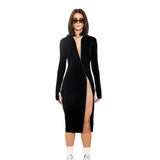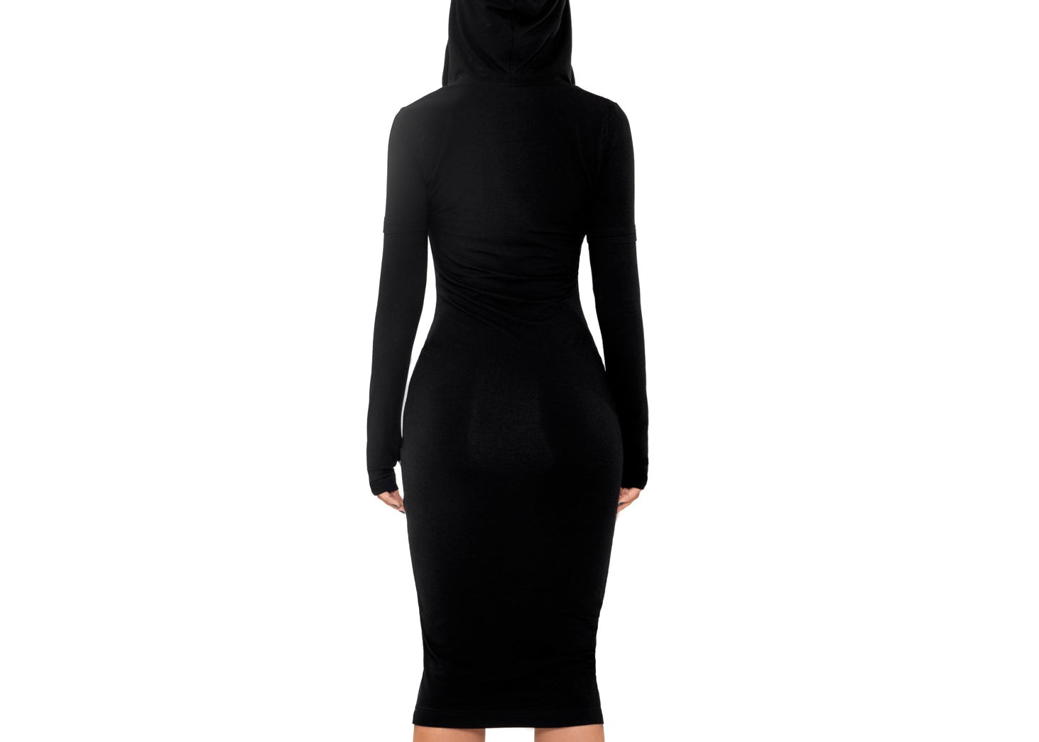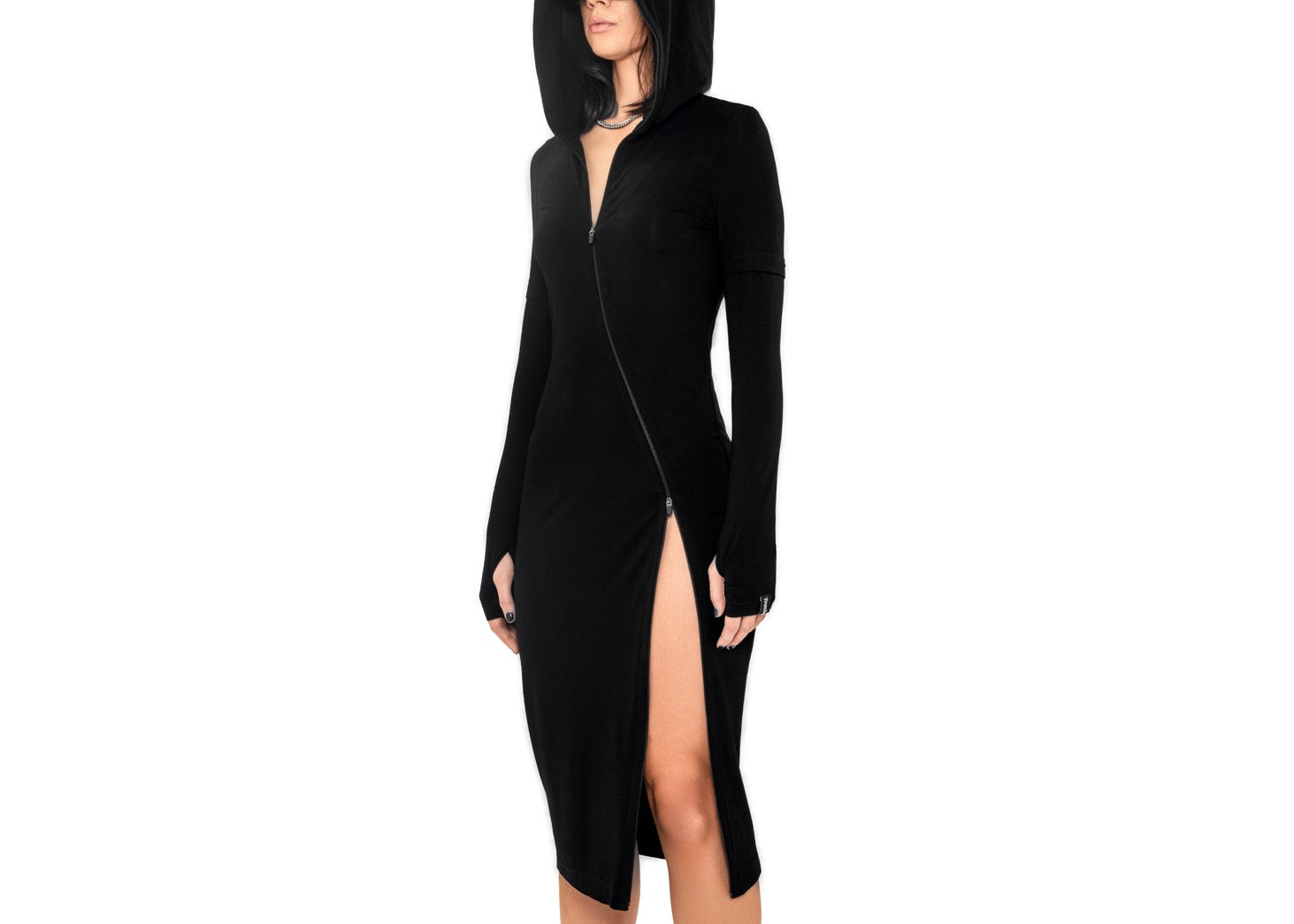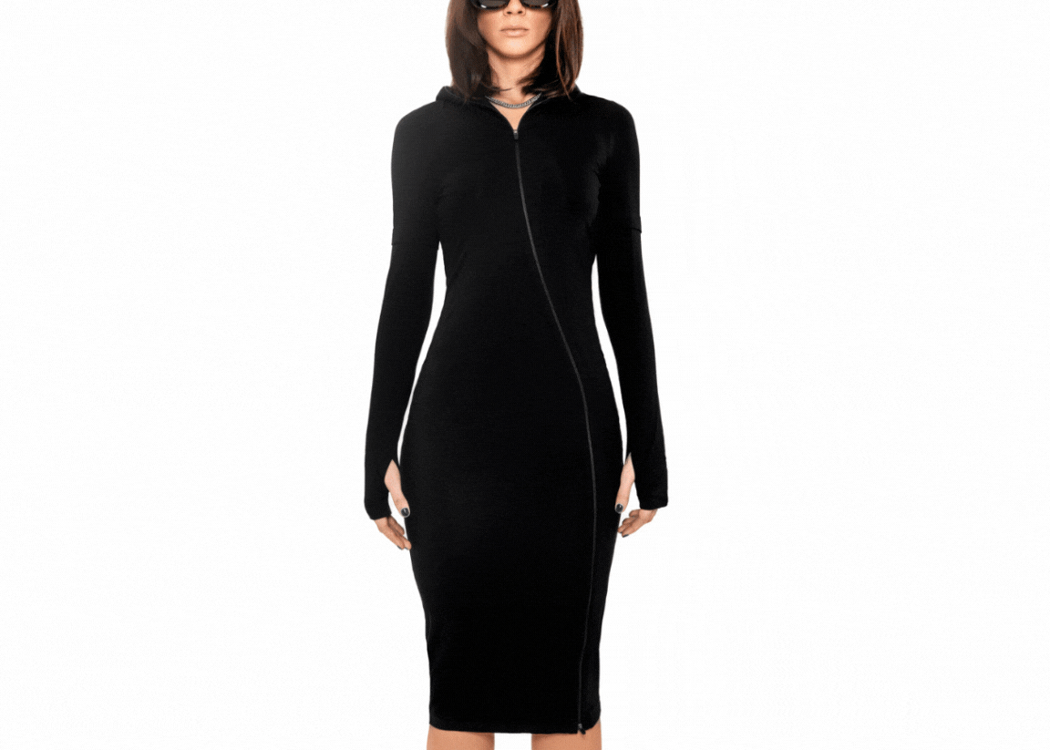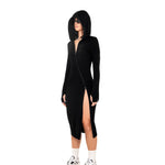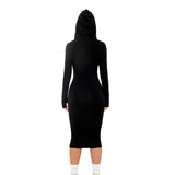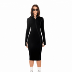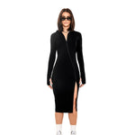[REVENGE] ZIP UP Midi Long Sleeve Hoodie Dress in Black