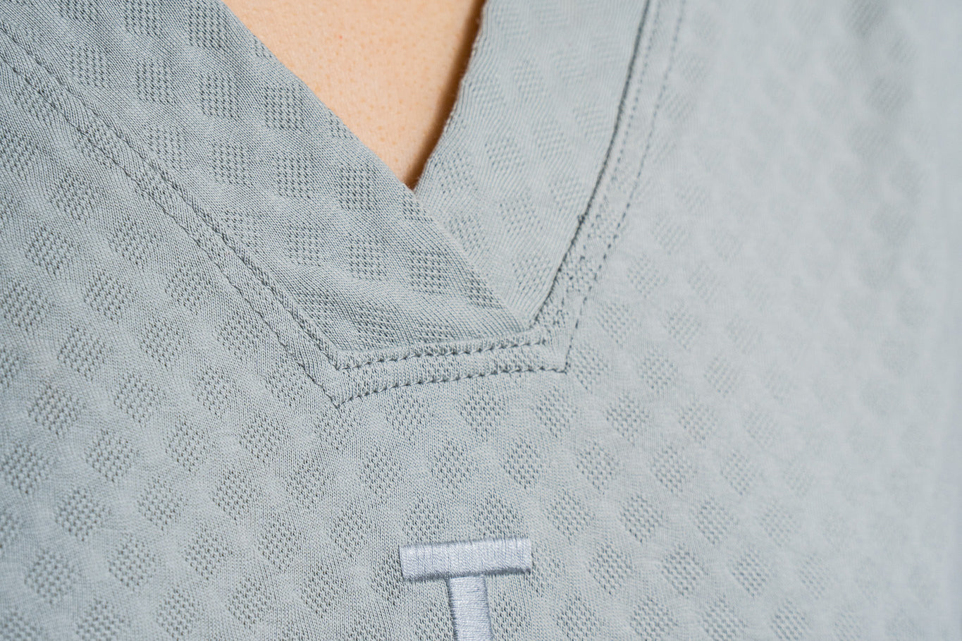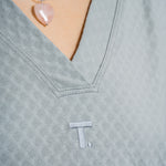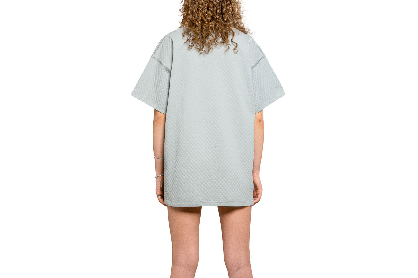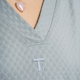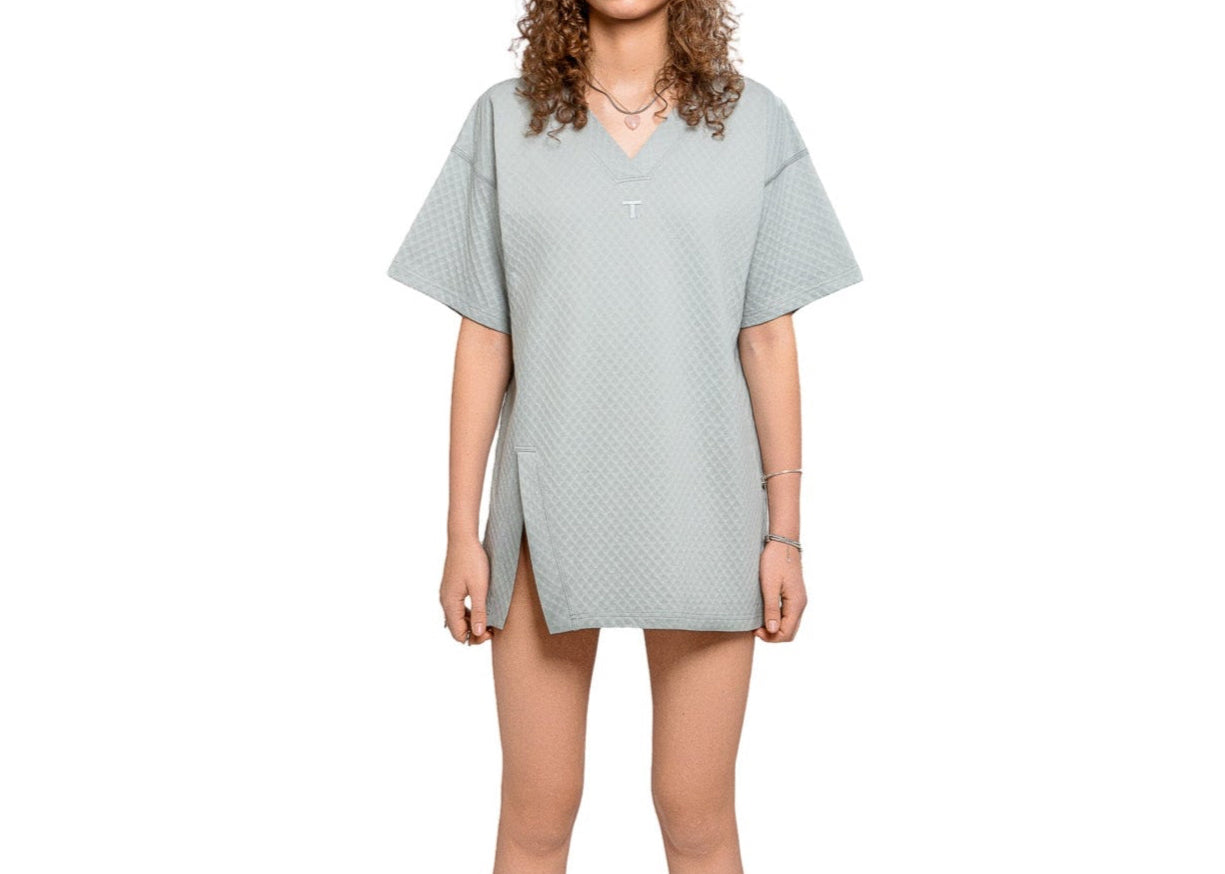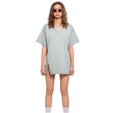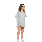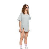LUNA High Slit V-Neck Tee Dress in Silver Glow & One Leg Pocket Short in Light Ash