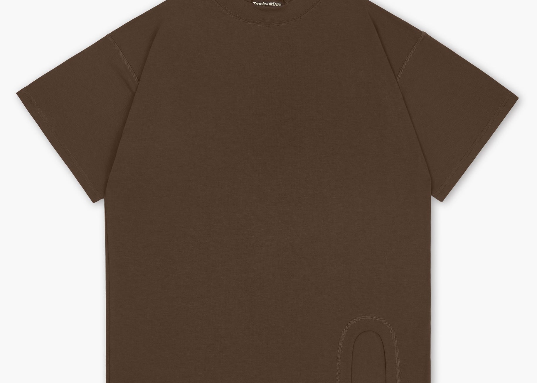 OVERSIZED Cut Out Tee Dress & One Leg Short Co-ord in Chocolate Martini
