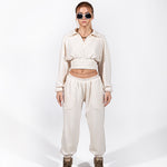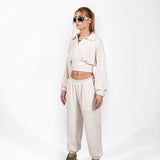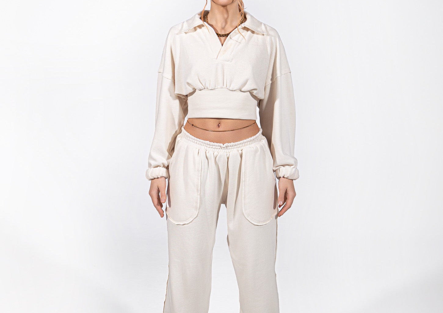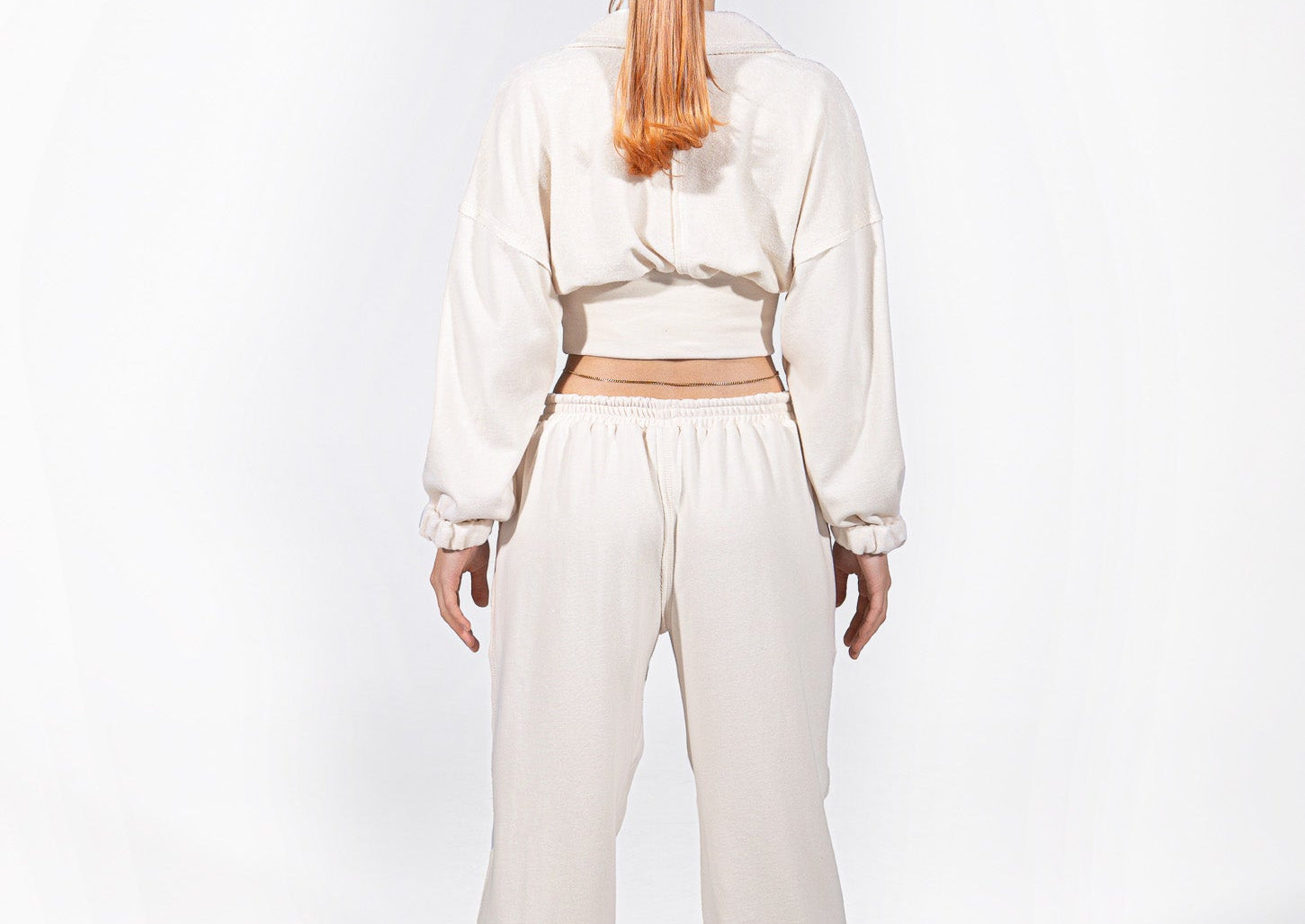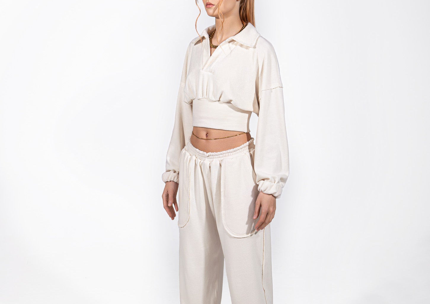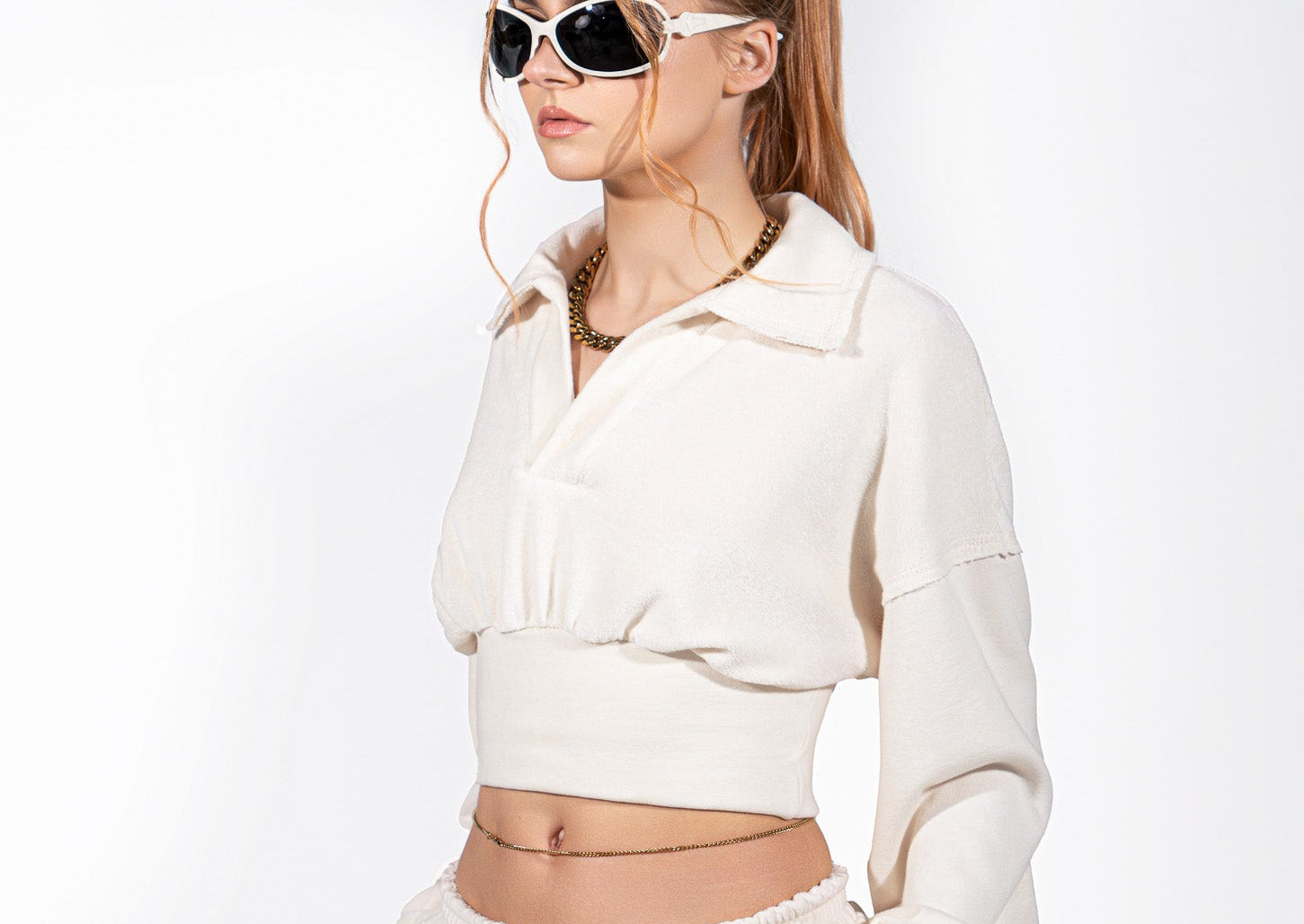 [POLARO] 100% Organic Cotton Terry Cropped Sweatshirt in White Sand