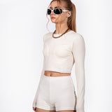[POLARO] Organic Cotton Long Sleeve Panelled Baby Tee in Marshmallow