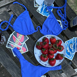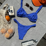 [ SWIM ] Ruche Strap Triangle Bikini Bottoms in Indigo Illusion
