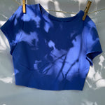 Stay active & cute with our Panelled Short Sleeve Swim Crop Top in Indigo Illusion. Perfect for water activities like paddle boarding or other adventures that require more coverage, this swim crop top offers a trendy and comfortable option for active beach-goers.