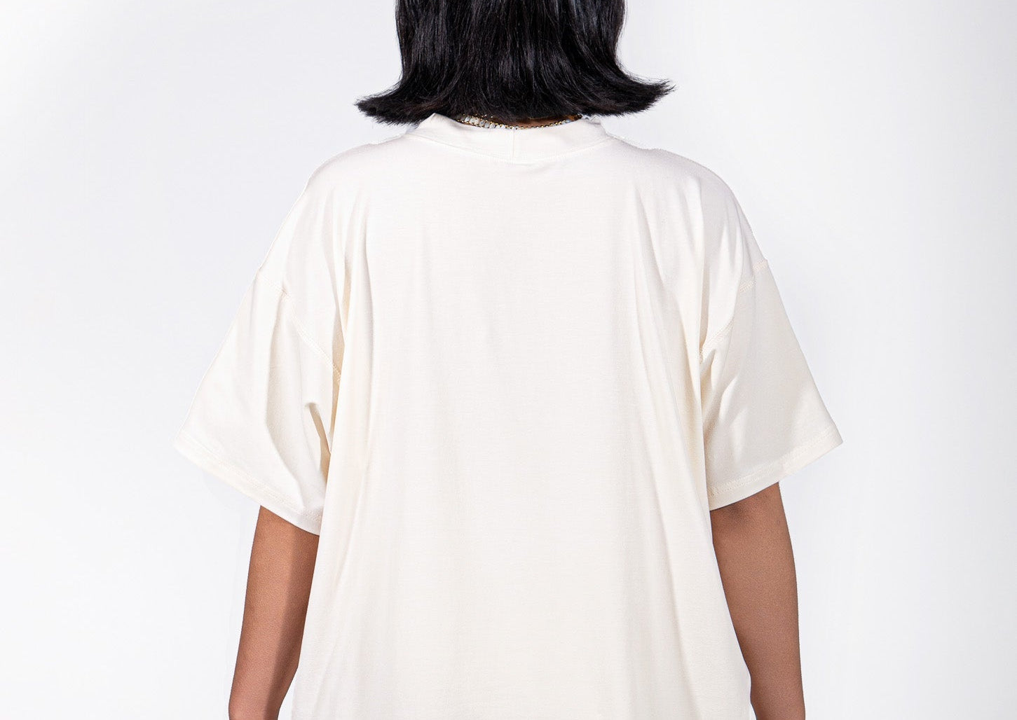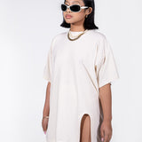*TALL* [POLARO] Oversized Cut Out Tee Dress & One Leg Short in Oat Latte